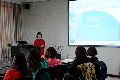 外国语学院张晓敏老师从“对分课堂”的创始人、目前发展趋势、《英美文学》课程的“对分实践”四方面详细阐述了“对分课堂”的PAD理念及应用情况,同时张晓敏老师以本学期正在进行的美国文学课为例,向大家分享了实施“对分课堂”的细节及收获。例如“对分课堂”的“亮闪帮”形式,增强了学生学习的主动性;减轻了教师的讲授负担,真正实现了教师角色的转型;增加了师生之间的互动交流;提高了学生的学习效果等。
