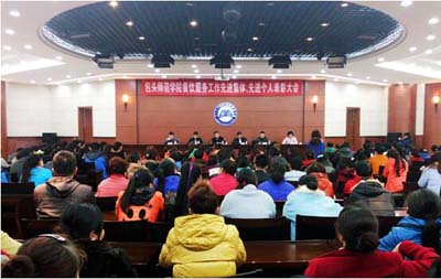 11月20日下午,针对这次评选活动,我校召开了“餐饮服务工作先进集体、先进个人表彰大会”,后勤处党总支书记、处长毕可强,副处长王跃平,宣传部副部长韩伟,餐饮服务管理中心主任吴开参加了会议,会议由餐饮服务管理中心副主任亢震威主持。
