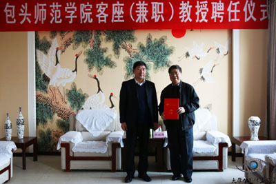 聘任仪式上,张彩霞处长介绍了樊祖荫教授的履历,并宣读了学校的聘任决定。刘院长在致辞中,对樊祖荫先生的加盟表示热烈欢迎和衷心感谢。学院兼职教授是授予校外著名专家学者的荣誉性学术称号,参与指导我校学科建设、兼任一定的教学、科研或指导研究生的工作。聘请兼职教授,是落实学校“人才兴校”战略、学校师资队伍建设工作的重要组成部分,对于加速我校的学科建设,提高教学科研水平和学术地位,扩大社会影响,促进国内外学术交流,营造良好的学术氛围等都具有重要意义。刘院长还简要介绍了我校的基本学科建设、学术研究水平等相关情况,希望樊祖荫教授能为音乐学院的专业学位学科建设、促进学校与中国音乐学院的交流与合作、以及专业学位硕士点的申报出策出力,樊祖荫教授也表示,将不负期望,尽自己所能,为我校艺术学科的发展做出贡献。随后,刘兴旺院长代表学校向樊祖荫教授颁发了兼职教授聘书并合影留念。( 音乐学院 )