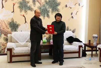 仪式上,张彩霞处长介绍了杨民康教授的履历,宣读了学校的聘任决定。王有亮副院长代表学校向杨民康教授颁发了兼职教授聘书,并表示欢迎杨教授加盟我校,希望杨教授的加盟能够促进学校艺术学科的发展,进一步促进学校与中央音乐学院的交流与合作。杨民康教授表示,将不负期望,尽自己所能,为包师院艺术学科的发展做出贡献。( 音乐学院 )