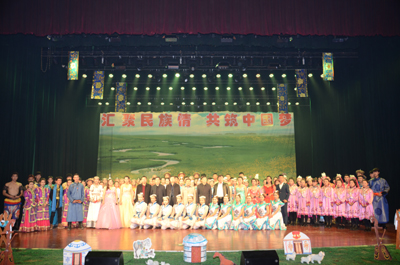 晚会在极富民族特色的舞蹈《鹿之城》中拉开帷幕,欢快的节奏,优美的舞姿,展现了蒙古族少女对鹿城包头的款款深情;诗朗诵《民族情,中国梦》、歌曲《我的根在草原》、《轻柔的世界》、《鸿雁》、《在那东山顶上》,长调《辽阔的草原》、小合唱《金杯》、舞蹈《月狐吟》、《漠日》……点燃了现场热烈的气氛;我校大学生社团联合会“奈热”马头琴社团带来的原生态组合表演的《故乡》以其铿锵的乐感,磅礴的气势,将骏马奔腾,驰骋草原的场景体现的淋漓尽致;我校大学生少数民族艺术团排演的蒙古族风俗展示《陪你一起看草原》成为了晚会的一个亮点,身着艳丽蒙古族服饰的模特们在悠扬的音乐声中展示着蒙古族民俗文化的独特魅力,蓝天白云,绿草红衣,一幅充满着蒙古族民俗风情的美丽画卷展现在观众面前,更让大家了解了蒙古族民俗文化的渊源与特色,可以说是一堂生动的民族文化教育课;演出在《和谐圆舞曲》的歌声中落下帷幕,将“汇聚民族情•共筑中国梦”的主题定格在观众和演员的心中。