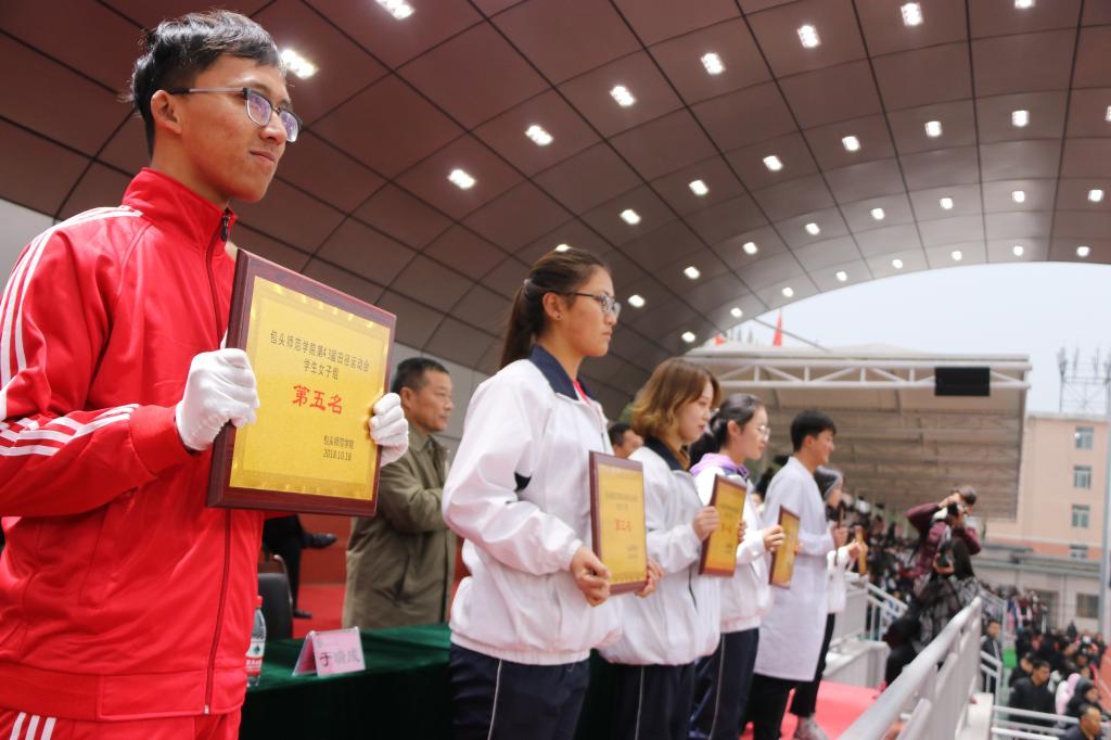 颁奖仪式后,党委委员、副院长施纪华致闭幕词。他代表学校对取得优异成绩的运动员和集体表示热烈祝贺,向付出辛勤劳动的全体工作人员表示衷心的感谢。他希望全校师生应继续传承和发扬顽强拼搏精神,进一步推动我校体育事业和各项工作的全面发展。他指出,学校将继续发挥体育传统优势,全面贯彻党的教育方针,牢固树立“健康第一”“终身体育”的宗旨,认真实施体育教学计划,持续改善体育教学训练设施和运动环境,不断推动我校体育运动的深入开展,形成全校师生热爱体育、崇尚运动、健康向上的良好风气和重视体育的浓厚氛围,为全面推进学校“十三五”规划、胜利召开学校第三次党代会、实现习近平总书记提出“广泛开展全民健身活动,加快推进体育强国建设”的体育事业新目标,凝聚更大的发展力量,做出更新的贡献。(宣传部)