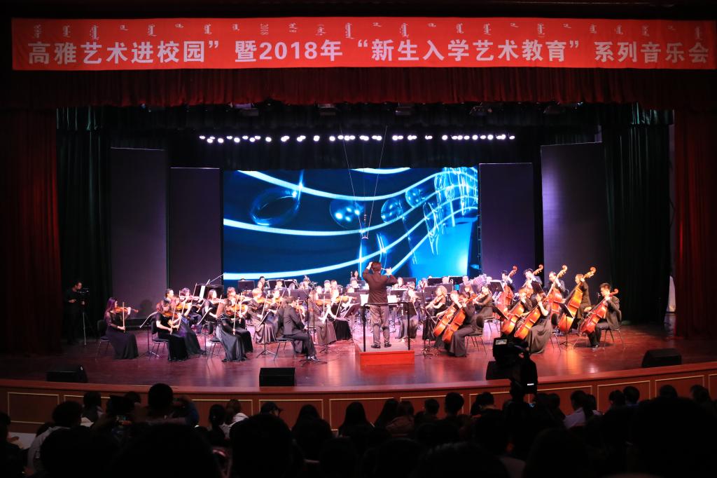 “高雅艺术进校园”活动是推动和深化学校艺术教育常态化建设,服务学生人文素质发展,弘扬传统文化,提升校园文化品位,丰富校园文化生活的有效活动载体,旨在将高雅艺术融入校园文化建设,达到艺术教育“润物无声、育人无形”的效果。我校作为一所有着深厚文化底蕴的高校,高度重视大学生艺术教育,此次将“高雅艺术进校园”活动与“新生入学教育”有机结合,为大学生提供了一个更好地亲近艺术、提升艺术素养、感受艺术魅力的平台。预计学校于11月开展的2018年度“新生入学艺术教育”活动共将举办6场音乐会,内容涵盖中国民乐、交响乐、马头琴及蒙古族音乐等。望广大师生继续关注并积极观看演出。(宣传部)