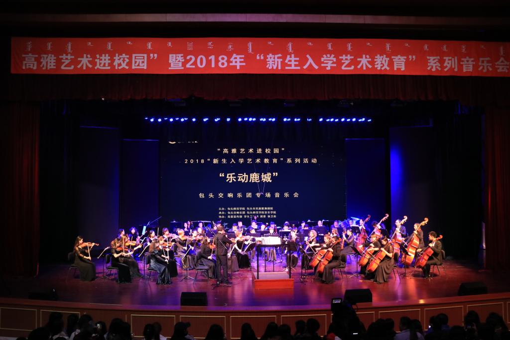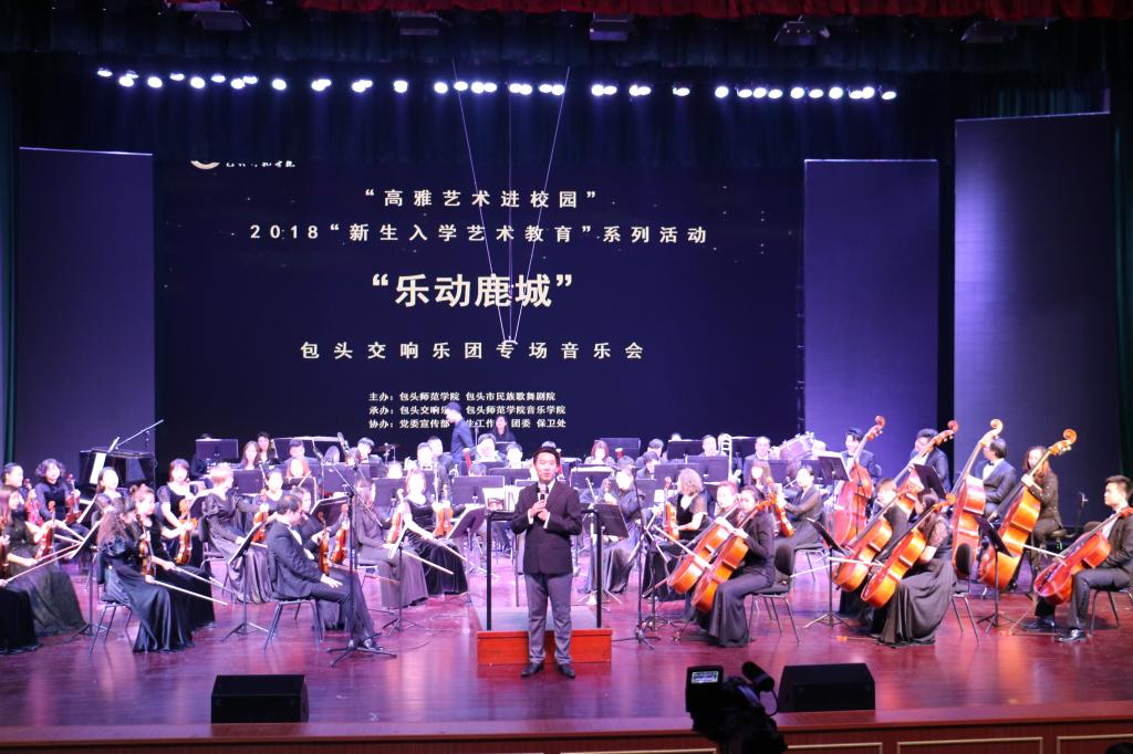 11月13日晚,我校“2018年新生入学艺术教育”暨“高雅艺术进校园”系列活动首场——“乐动鹿城”包头交响乐团专场音乐会在会堂举行。近千名师生观看了演出。