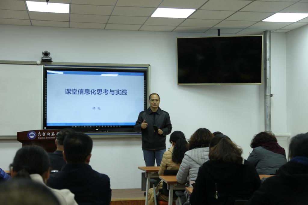 为加大教育教学与信息化技术的深度融合,提升我校教师教学信息化水平,加强网络教学资源建设能力。11月14日下午,我校邀请中央民族大学信息工程学院林旺教授,在博学楼一楼智慧教室作了题为《智慧教学—课堂信息化实践与评价》的讲座。教务处领导及各学院40余名教师聆听了讲座。