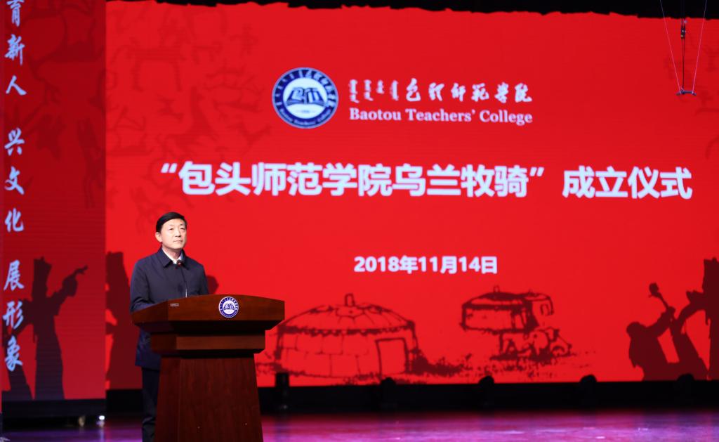 学校党委委员、副院长施纪华宣读《关于成立“包头师范学院乌兰牧骑”的决定》。