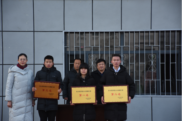 体育学院党总支书记李明升为体育学院组前三名代表队颁奖