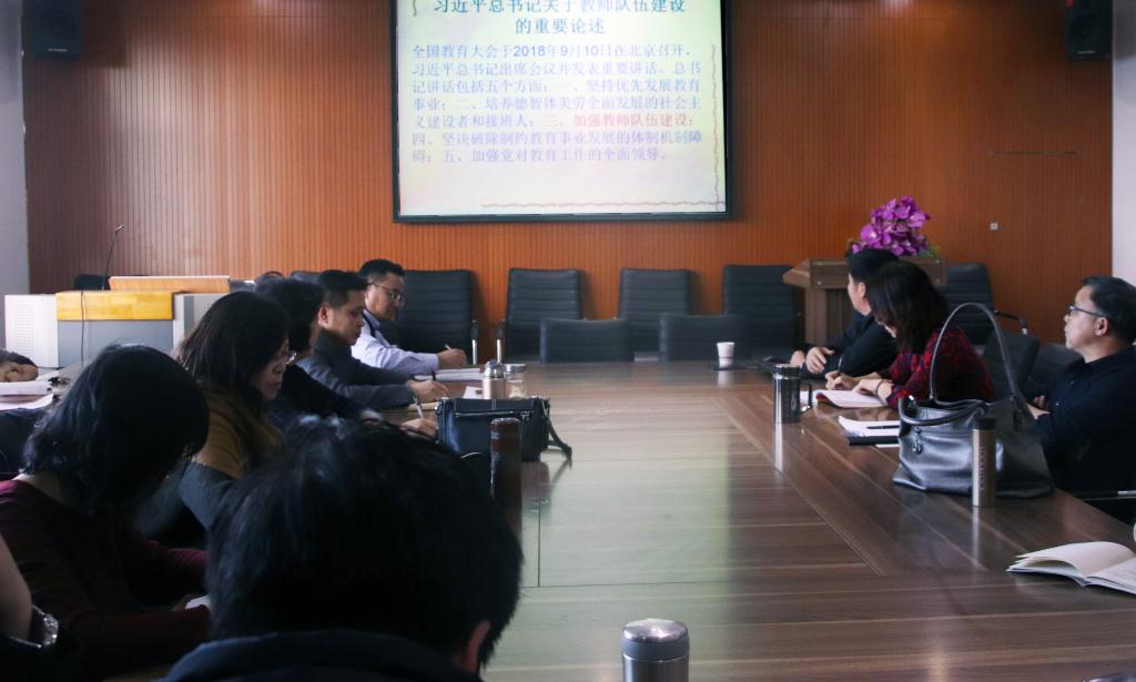 围绕全国教育大会精神,双山同志从“习近平总书记关于教师队伍的重要论述”、“教师队伍建设的重要性”和“今后的主要任务”三个方面展开了深刻的解读。他重点强调了学科建设与人才建设的重要性,并指出学科建设最为关键的是学科团队建设,而学科团队建设最重要的是引进高素质的人才和青年教师的定向培养,为此,他鼓励青年教师攻读博士学位,提升自我修养。