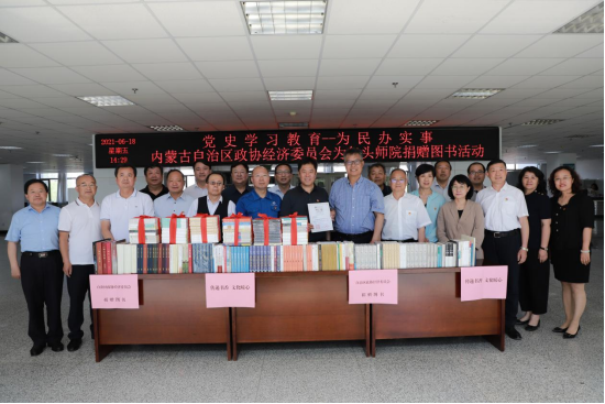 6月18日下午,内蒙古自治区政协经济委员会为我校捐赠图书活动在图书馆二楼举行。自治区政协经济委员会分党组书记、主任周耀亭一行为我校捐赠了政治、经济、文学等类书籍共计200余册,金桩校长向周耀亭书记颁发了捐赠证书。包头市政协副主席李新春、校党委副书记施纪华参加了捐赠活动。活动结束后,政协经济委员会领导一行参观了我校图书馆古籍库。值此喜迎建党100周年,全党开展党史学习教育之际,自治区政协经济委员会开展的为民办实事图书捐赠活动,把关怀和温暖送到了我校,以实际行动体现了“学党史、悟思想、办实事、开新局”的要求。(图书馆)