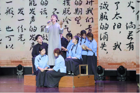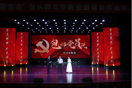 展演以情景剧、舞蹈、话剧、歌曲、画展等多种形式呈现了中国共产党百年来的峥嵘岁月和不屈信念。舞蹈《五四风雷》回顾那段舍生忘死、浴血奋战的历史,舞出一首荡气回肠的战歌;党史情景剧《绣红旗》重现前辈们冲破黎明前的黑暗,绣红旗,用鲜血和生命呼唤新中国的红岩精神;话剧《我们的青年时代》由一百年前的先锋队和一百年后的主力军共同谱写了一曲赤子之歌;独唱《阳光雨露》唱出了中国共产党如阳光雨露一般滋润着华夏大地,指引着中国人民伟大梦想的航船,乘风破浪、坚毅前行。《长征》《德润春天》《额吉-都贵玛》……一曲曲旋律、一段段故事不仅体现了中国共产党人的初心,也浸透着全校师生“永远跟党走”的坚定信念。