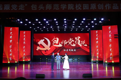 百年征程波澜壮阔,百年初心历久弥坚,一生耕耘桃李芬芳,不负使命壮怀依旧。展演期间还举办了“光荣在党50年”纪念章颁发仪式,为我校“光荣在党50年”的15名老同志代表颁发了纪念章,感谢他们为党、为党的教育事业做出的不可磨灭的贡献。新党员为他们献上鲜花,校党委书记王永明为他们颁发“光荣在党50年”纪念章,他们是全校师生党员的榜样,激励着大家更加坚定理想信念,砥砺对党的赤诚忠心,在新时代教育事业的新征程中,书写包师人勇担使命的崭新篇章!