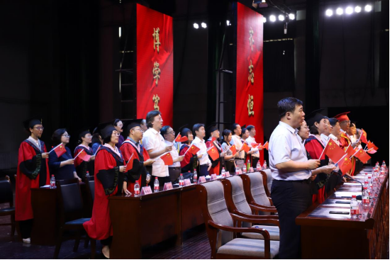 七月流金似火,青春逐梦远航。7月2日9:00,我校2021届毕业典礼暨学位授予仪式在会堂隆重举行。全体校领导及学校学位评定委员会委员、毕业生代表、家长代表、硕士生导师、全校副处级以上干部、学工办主任、团总支书记、辅导员、班主任、教师代表参加仪式,共同见证同学们的高光时刻,分享他们收获的喜悦,并向他们表示最衷心的祝福和最美好的祝愿。仪式在嘹亮的国歌声中正式开始。