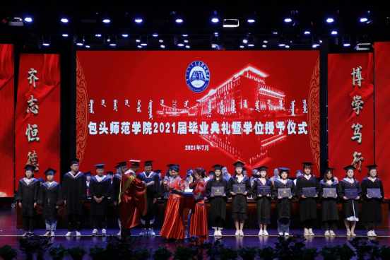 “一朝包师人,一世包师情”,本科毕业生代表越圆依依惜别。“母校已经成为了我们生命的一部分,包师人的身份不仅是光环,更是教育强国的使命担当。包师人这张名片随着我们的经历会愈加闪亮,‘学高为师、身正为范’的精神让我们更加志存高远,让我们带着那份对社会的责任感,心中牢记‘博学、笃行、齐志、恒德’,在社会的各行各业中尽情施展我们的才华。希望大家记住我们是包师的学子,在各自的人生舞台上,慷慨激昂,精彩绽放”。