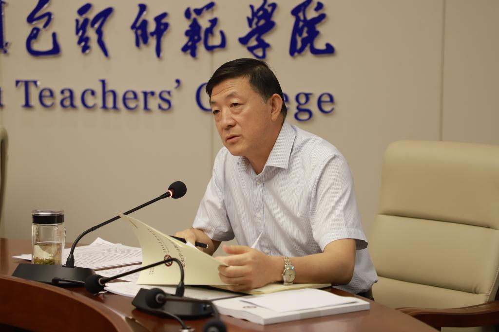 施纪华同志依据党史学习教育安排,就8-12月党史学习教育基本任务清单进行了解读。并提出了两方面的具体要求,一是要把专题学习、载体活动、为民办实事与目标要求有机融合,特别是牵头部门要抓好统筹协调,各党总支、党支部要落实好主体责任。二是要落实好六项重点任务,即要用好《习近平新时代中国特色社会主义思想学生读本》;要多层次分类开展“七一”讲话专题学习培训;要加强顶层设计,把学习习近平总书记“七一”重要讲话精神和“四史”教育、铸牢中华民族共同体意识教育有机融合起来;要把党的十九届六中全会的精神学习和深化党史学习教育结合起来;要把深化党史学习教育成果同推进新时代教育评价改革结合起来,使党史学习教育融入日常抓在经常,形成长效机制,推动我校“十四五”规划各项目标任务能够落地落实。