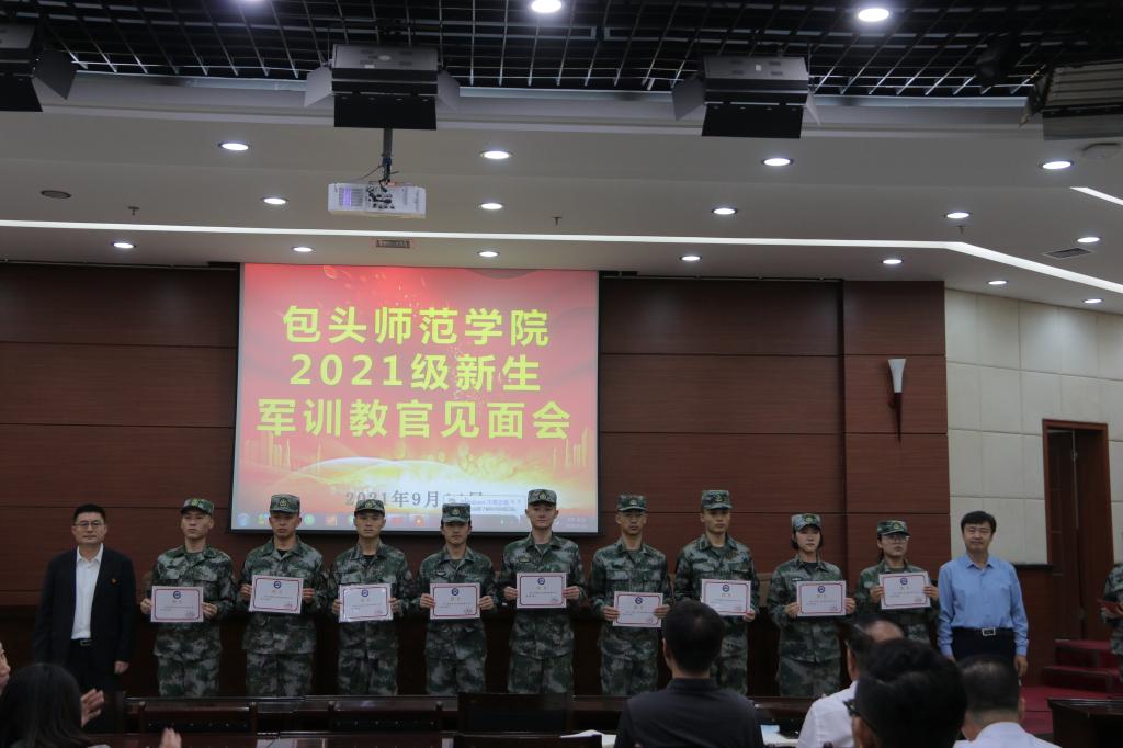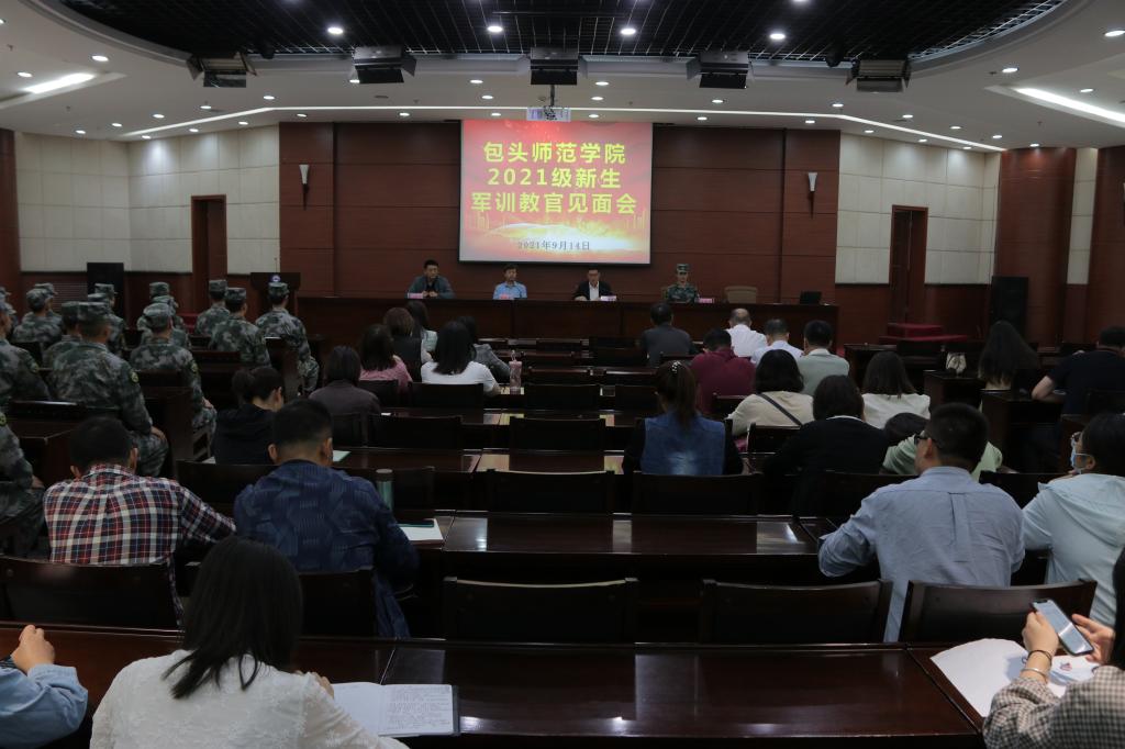 9月14日下午,我校在图书馆会议厅召开2021级新生军训教官见面会。2021级新生军训团团长、学生工作部、武装部部长薛志东,军训团政委、教务处处长赵建军,军训总教官王在新、各学院分管学生工作领导、学工办主任、辅导员、新生班主任和全体军训教官参加了会议,会议由学生工作部、武装部副部长刘国庆主持。