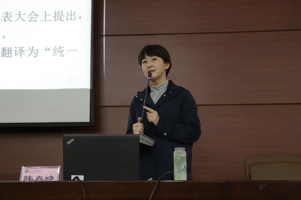 会上,自治区党委统战部韩春晓处长以“学好《中国共产党统一战线工作条例》,画出最大同心圆”为题,从充分认识新时代统一战线的地位和作用,全面准确掌握《条例》的基本精神、主要内容和工作要求,以《条例》为基本遵循不断推进统一战线工作守正创新三个方面深刻阐释了统一战线是中国共产党凝聚人心、汇聚力量的政治优势和战略方针,是夺取革命、建设、改革事业胜利的重要法宝,是增强党的阶级基础、扩大党的群众基础、巩固党的执政地位的重要法宝,是全面建设社会主义现代化国家、实现中华民族伟大复兴的重要法宝。深刻分析了条例修订的亮点、突出特点和内在逻辑,并结合当前统一战线的新使命、新任务和新要求就扎实抓好《条例》的贯彻落实提出建议。