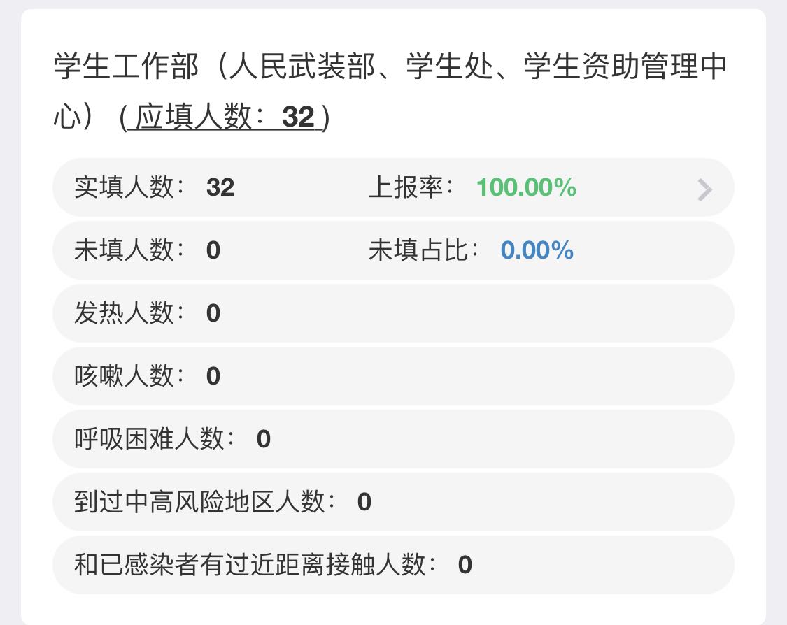 学生工作部构建“学生工作部—学院学生工作领导小组—辅导员、班主任—学生班级”疫情防控四级网格信息摸排工作机制,坚持日报告和“零报告”制度,通过健康日报系统、公寓门禁系统、学工微信群等信息化手段,动态化掌控全校学生身体健康信息;重点排查近期与呼市新冠肺炎确诊病例有时空交集的密切接触者和次密切接触者,并及时协助青山区疾控中心和校医院落实排查人员,做好管控工作,实时跟踪核酸检测结果并建立排查数据库;密切关注学生情况,在调查统计基础上,积极回应学生关切的问题,及时反馈学生诉求,协调有关部门积极应对、妥善解决。同时,要求学生工作部全体工作人员24小时待命,保持通讯畅通,随时准备根据疫情情况开展排查工作。