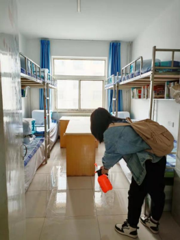 严格按照疫情防控公寓消杀要求,按标准比例配好消毒液存放到指定位置备用,每日由每栋公寓楼楼管督促各宿舍舍长按照标准流程要求消杀后,关闭门窗半小时后开窗通风,严格细致做好消杀记录。同时加大对公共区域消杀的监督力度,将存在的问题及时反馈至物业公司。