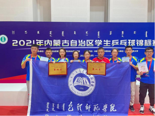 10月16—21日,2021年内蒙古自治区大学生乒乓球锦标赛在内蒙古师范大学举行,我校由体育学院王化冰老师带队,牛宇杰、徐鹏举、王炳灵、柴毅科、陈雨婷、习慧琳、张雅辰、陆舒怡8位同学参加了校园男子组和校园女子组的比赛。