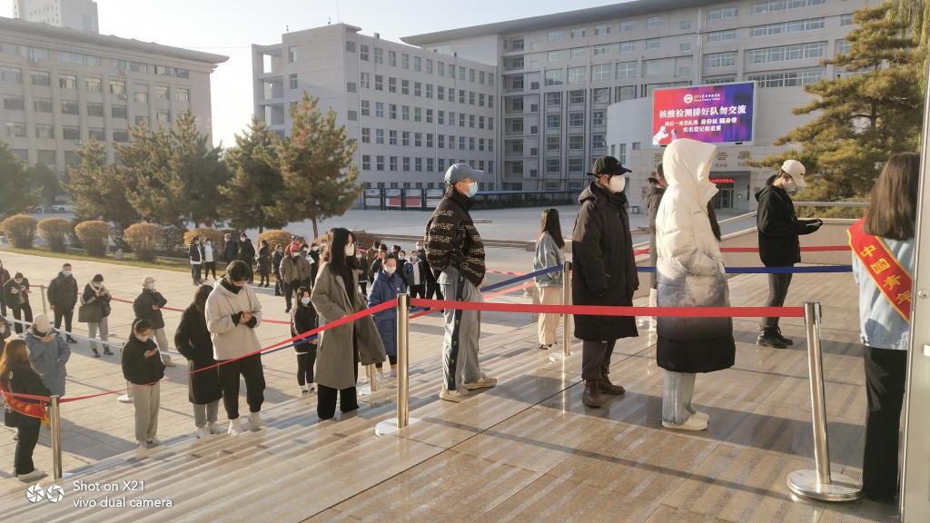 此次核酸检测工作各部门同心合力,协调联动,学校志愿者们精心服务,不畏辛苦,以暖心的服务,为此次核酸检测顺利完成打下了坚实的基础。(党政办公室)