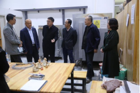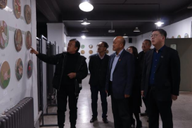 调研会后,与会领导和老师们观看了学校创新创业工作宣传栏并参观了美术学院壁画摹制创新实践作品展、实地调研了丝印技术创新实践工作室和陶艺创新实践工作室。