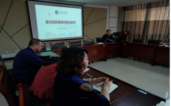 11月30日下午,图书馆在会议室举行2021年师德师风专题警示教育大会,全馆教职员工参加,党总支书记、馆长胡琮禹主持。