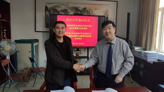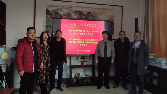 为了响应联合国《生物多样性公约》第十五次缔约方大会号召,贯彻落实自治区第十一次党代会精神及学校“十四五”事业发展规划,更好地服务地方经济社会发展,进一步开展黄河流域生态保护和高质量发展研究,生物科学与技术学院与包头市昆都仑区农牧局于12月28日在齐志楼419会议室举行了关于“梅力更自然保护区和昆都仑河国家湿地公园野生动植物本底资源调查”项目合作签约仪式。生物科学与技术学院院长刘晓光和包头市昆都仑区农牧局科长马成代表双方单位在合作协议上签字。党总支书记纪小丽、项目负责人刘利博士及项目相关工作负责人门中华、杜超老师参加了签约仪式。