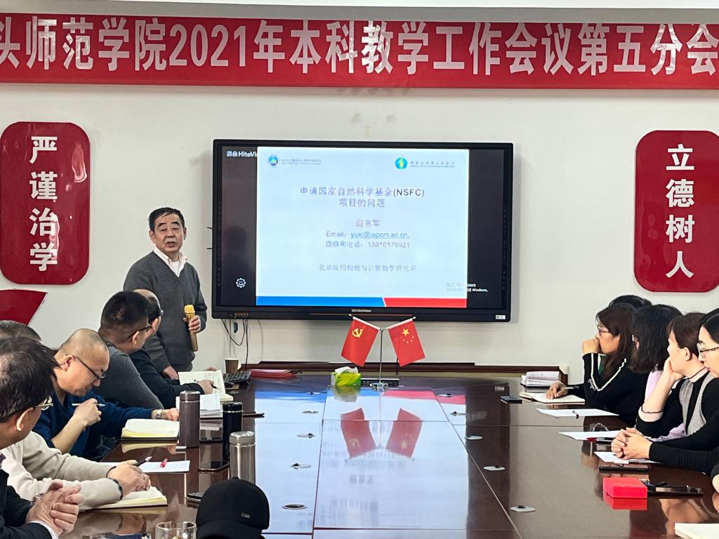 为整体提高我院科研水平,增强教师们的科研能力,北京应用物理与计算数学研究所蔚喜军研究员于2021年12月26日莅临我院,在为期6天的时间里,针对不同的教师群体,从申报各类项目、撰写与发表论文、科研团队建设、学术交流活动等方面做出了具体指导。具体如下: