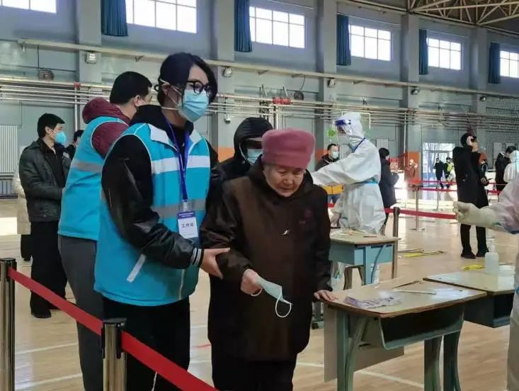 2019级汉国的孙晓楠、2021级播主冯苗同学按照防疫要求,为群众耐心解答、细心引导维持现场秩序。孙晓楠同学按时告知村里的村民做核酸检测,并帮助不会使用智能机的老年人找出自己的健康码与行程码,帮助全村居民都顺利完成核酸检测。冯苗同学以单元、楼栋为单位,通知住户分批次排队待检,确保核酸的检测有序进行。