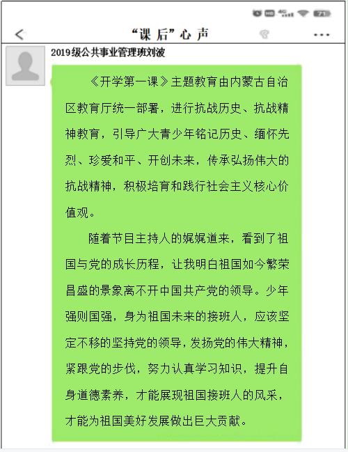聆听铭记习近平总书记的殷切嘱托。经济与管理学院组织全体师生通过“内蒙古教育发布”微信公众号与部分媒体平台同上主题为“牢记嘱托,筑梦北疆”的《开学第一课》。
