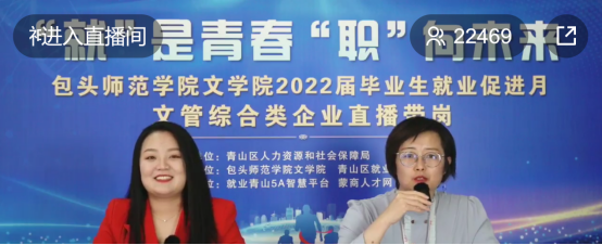 为做好文学院2022届毕业生就业促进工作,开拓更多就业岗位和机会,5月20日下午,由青山区人社局主办,文学院承办了“就”是青春,“职”向未来—文管综合类企业直播带岗招聘会。此次校企联动直播带岗活动,吸引了2万余人在线观看。