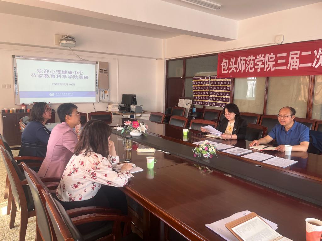 5月19日,学校心理健康中心主任高日晨、副主任郭雪梅深入教育科学学院调研指导大学生心理健康服务工作。教育科学学院党总支副书记李燕、学工办主任方丽慧及辅导员王璐然、曹媛、海林参加了会议。