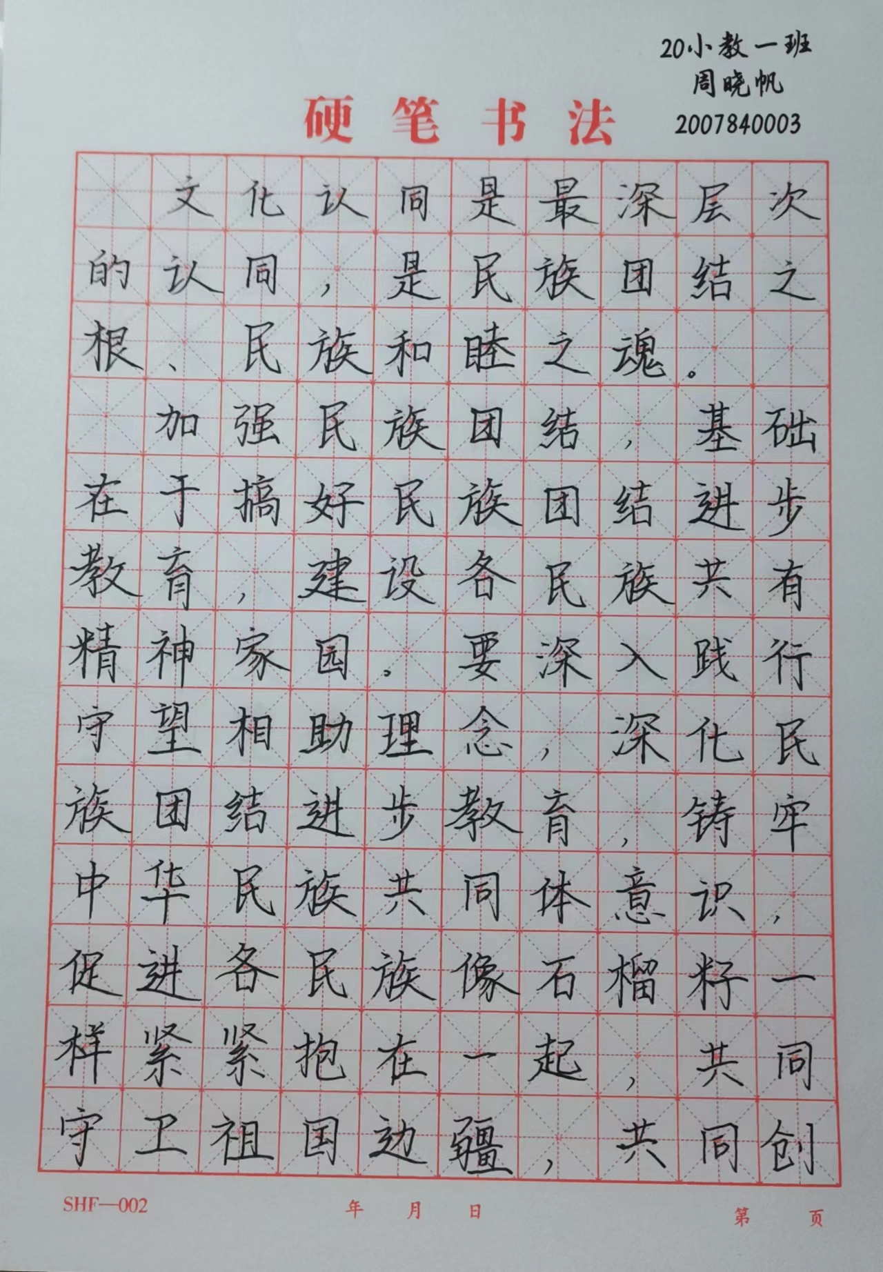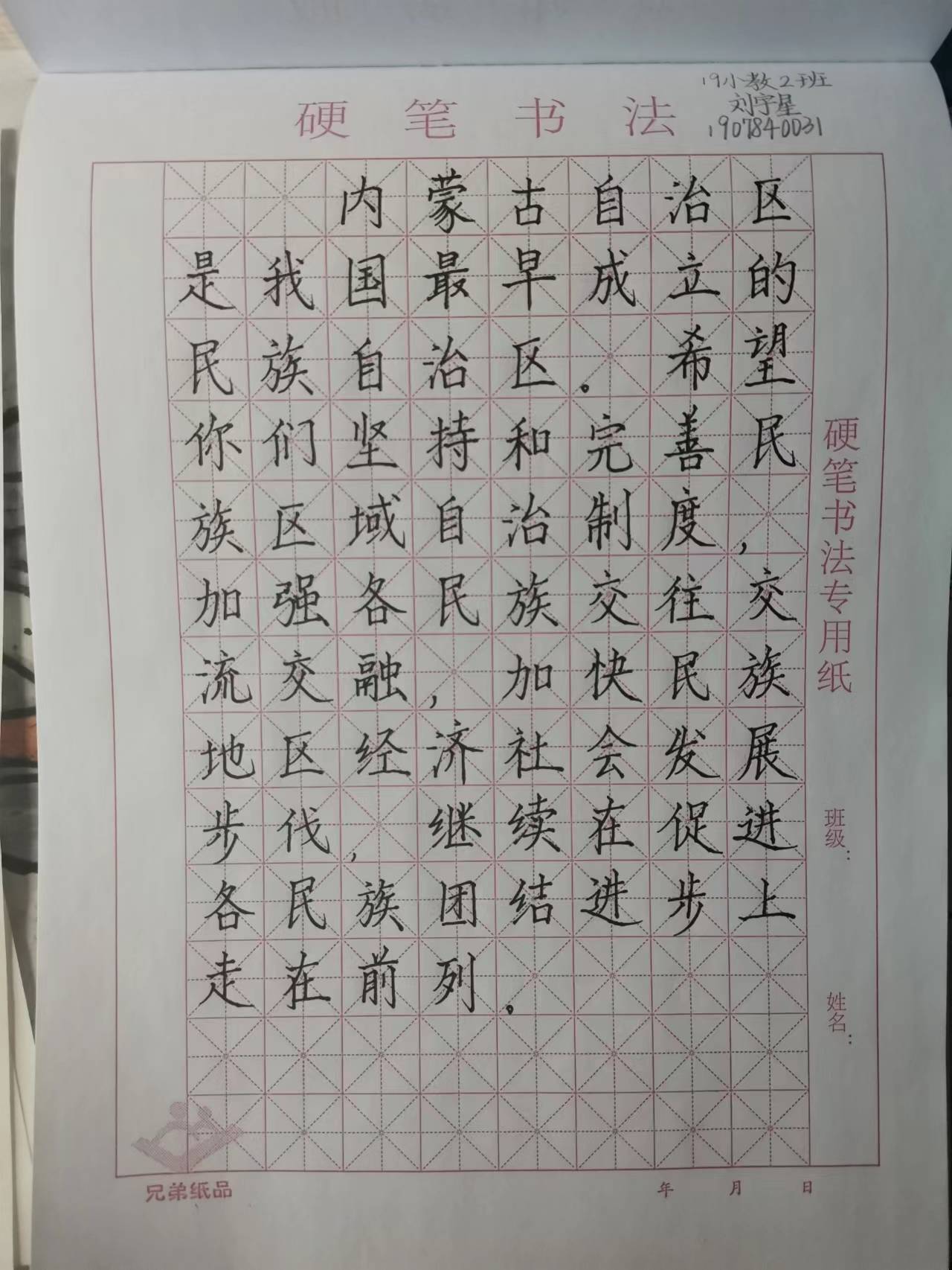 ——硬笔书法征集活动。5月19日-5月22日,教育科学学院学生会办公室举办了“初心唯致远,妙笔可生花”铸牢中华民族共同体意识主题硬笔书法征集活动。活动中,同学们通过深入学习习近平总书记关于民族团结的重要论述,以硬笔书法的形式进行段落摘抄,并围绕民族团结、铸牢中华民族共同体意识方面表达自己的认识和感想。作品内涵丰富、思想深刻、字迹工整,展示并传达了同学们对坚持中国共产党的领导、中国特色社会主义制度的优越性、民族区域自治制度的先进性和中华民族自强不息、厚德载物的精神的思想自信,彰显了“铸牢中华民族共同体意识,凝聚起民族团结的磅礴力量”的高度认同。同学们纷纷表示,当代青年大学生应思考如何真正地肩负起自己对国家的责任,勇立潮头,不断提高道德素养和专业技能,努力成为民族团结进步政策的践行者。