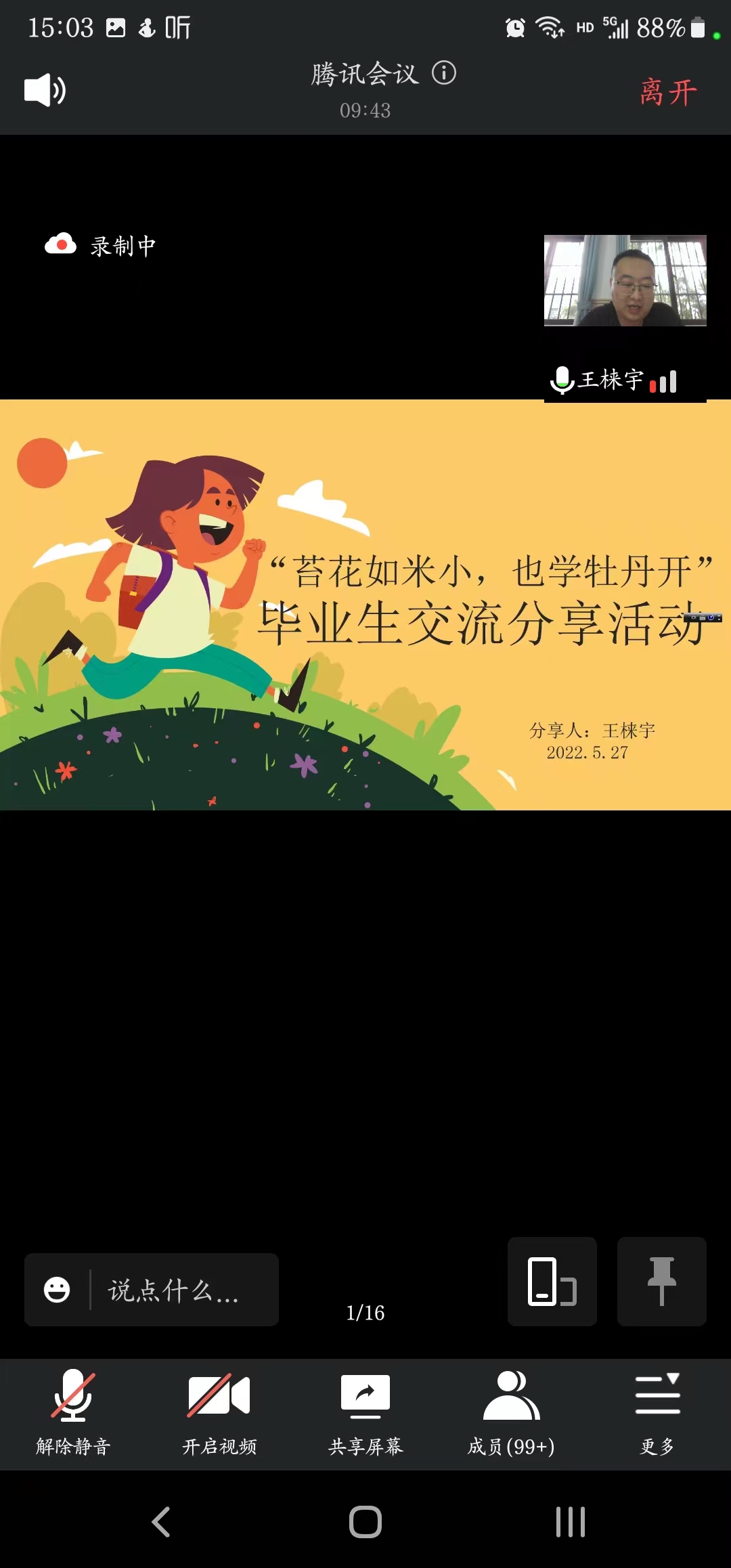 大学生就业问题是一个永恒的话题,尤其在当前,受疫情影响带来的就业压力更加严峻。此次讲座通过学长、学姐以各自的亲身成长经历为学弟学妹们讲述了就业历程和取得成功的途径,对引导学弟学妹们提升专业素质能力、转变就业观念起到了直接的积极的作用。(教育科学学院)
