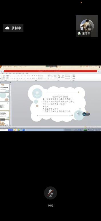 第二项议程是学院邀请资深考研规划师王老师为大家讲解考研形势及相关问题,他从小学教育研究生就业、考研备考流程梳理、专硕学硕区别、择校和全国院校分析及备考需求、复习计划等方面为同学们进行专业性指导,让同学们进一步了解考研流程及内容。随后针对同学的提问进行线上交流互动,在考研院校确立,考研讲义推荐等方面进行了解答。
