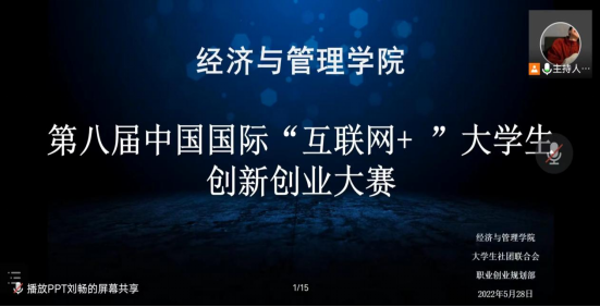 创新引领发展,创业成就未来。为进一步激发大学生创新创业热情,发现创新创业典型,提高大学生创新创业能力。5月28日晚,经济与管理学院第八届中国国际“互联网+”大学生创新创业大赛于线上成功举办。担任大赛评委的有我院学工办老师陈丽芳、胡吉雅、李婕、曹瑞。本次大赛共有十九支团队参赛。