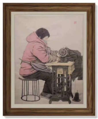 《裁缝》60X90cm作者:孔祥楠2018级国画班