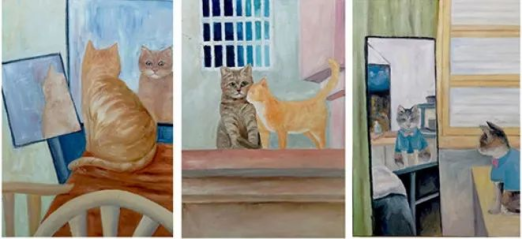 《喵星人》50x70cmx3 布面油画作者:李梦瑶2018级油画二班
