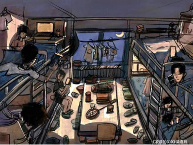 《凌晨的319辅导老师》135×100cm 综合材料作者:梁嘉玮2018级油画一班