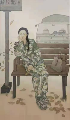 《候车》180X85cm作者:李丹2018级国画班