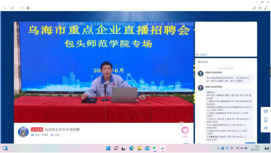 为了促进我院毕业生就业,提高毕业生就业质量,6月2日上午,政治与法律学院举办了包头师范学院专场直播带岗招聘会,此次招聘活动是包头师范学院联合乌海市就业服务中心,面向包头师范学院全体毕业生的专场直播带岗线上招聘会,一千余名毕业生参加了此次招聘会,部分非毕业生观摩了此次招聘会。