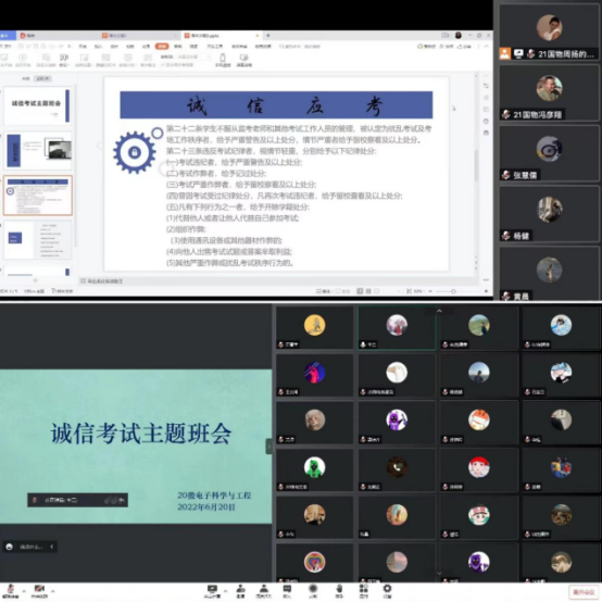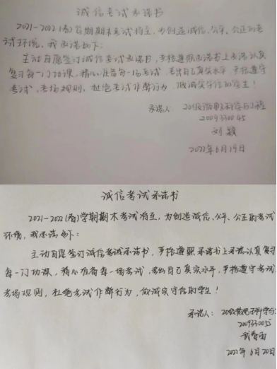 诚信考试是良好道德品格的体现,是诚信、自律与担当的外在表现。端正考试态度,认真复习,积极备考是每个学生的本职。期末将至,为进一步加强诚信考试教育,营造公平、公正、诚实、守信的考试环境,促进我院学风考风建设,学院于6月18日-20日,组织各班开展诚信考试主题班会,并签署诚信考试承诺书。