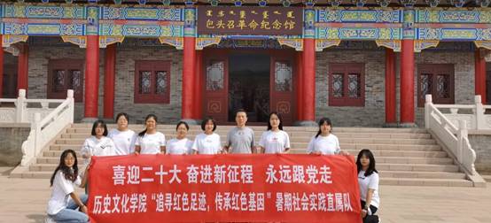 为深入贯彻落实内蒙古自治区党委“把内蒙古的形象立起来”的要求,引领广大青少年争做内蒙古的“宣传员”、“守护者”和“代言人。”历史文化学院直属队于7月19日赴包头市王若飞故居和包头召革命纪念馆区组织开展“喜迎二十大 奋进新征程 永远跟党走”---“热爱内蒙古、建设内蒙古—我为北疆添光彩”---“追寻红色足迹,传承红色基因”暑期社会实践活动。此次活动由党总支副书记吴冰和辅导员张英带队。为庆祝建党百年激发的爱党爱国爱社会主义热情传递,学习宣传党的百年奋斗重大成就和历史经验,历史文化学院直属队参观两个革命教育基地,开展重走红色足迹、追溯红色记忆、了解红色英雄人物、挖掘红色资源、体悟红色文化等,进行党史学习,引导同学们学史明理、学史崇德、学史力行。