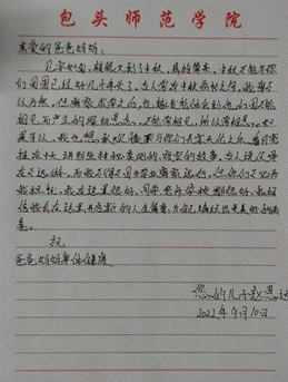 9月10日,体育学院团总支举办了手写书信中秋活动,写一封饱含深情的信件送上节日祝福,向自己的亲人、朋友等所爱之人表达思之情。本次活动写的不仅仅是简单的一封信,更是一份我们埋藏在心底很久却不露痕迹的情感。为我学院同学们提供了倾诉心里话的渠道,陶冶同学们的情操,提升同学们的文艺修养,丰富校园文化生活,更好地营造了节日氛围,同时弘扬了中华民族的传统美德,让同学们感受到中华文化的博大精深。(体育学院)