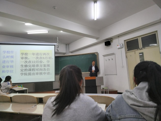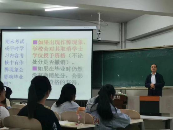 首先,郝建平院长给同学们讲解了学分制和选课制,以及双学位制;其次,郝建平院长还为同学们讲解了选课制以及每个选课的学分等,告诉同学们选课要根据自己的兴趣爱好来选择,因为兴趣是最好的老师;最后,郝建平院长还为大家讲解了绩点、学业预警、过程性评价、课程不及格以及作弊处理办法等制度。