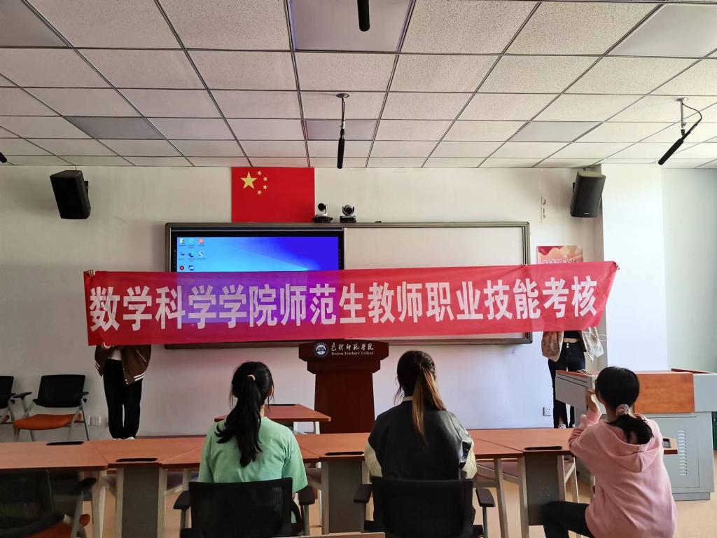 9月15日至22日,数学科学学院2019级师范生职业技能考核工作圆满结束。师范生教师职业技能考核是推进我校师范生技能训练与考核的常态化进程中的重要一环,旨在提高我校师范生教师职业技能水平。本次考核涵盖了教学设计、多媒体课件制作、说课、模拟授课、班主任工作、教师职业礼仪等项目,学生通过笔试、面试说课、 模拟教学等环节展示教师职业基本功。考核全程程序规范、组织有序,学院部分教师、学生志愿者积极参与,考核结束后,评委老师与被考核同学认真交流。近年来,数学科学学院采取多种措施,不断强化师范生技能训练,丰富教学技能考核形式和内容,规范技能考核流程,引导全院师生形成重视基本教学技能的良好氛围,为师范专业认证做好充足准备。(数学科学学院)