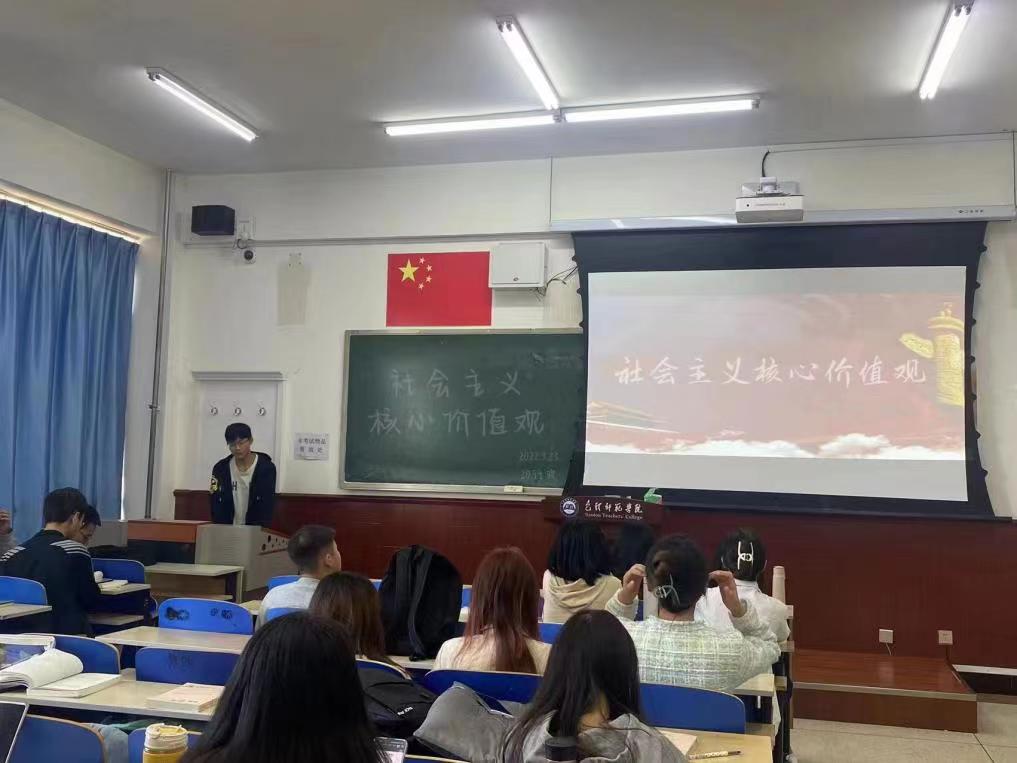 22社工班于2022年9月25日展开团日活动。首先,由22社工班班长介绍了习近平总书记在中国共产党第十九次全国代表大会上关于社会主义核心价值观的报告。同学们讨论了对于“社会主义核心价值观”重要性的理解,并通过观看生动有趣社会主义核心价值观24字解说视频,充分调动起现场的气氛。最后,全体同学共唱团歌,结束了本次团日活动。