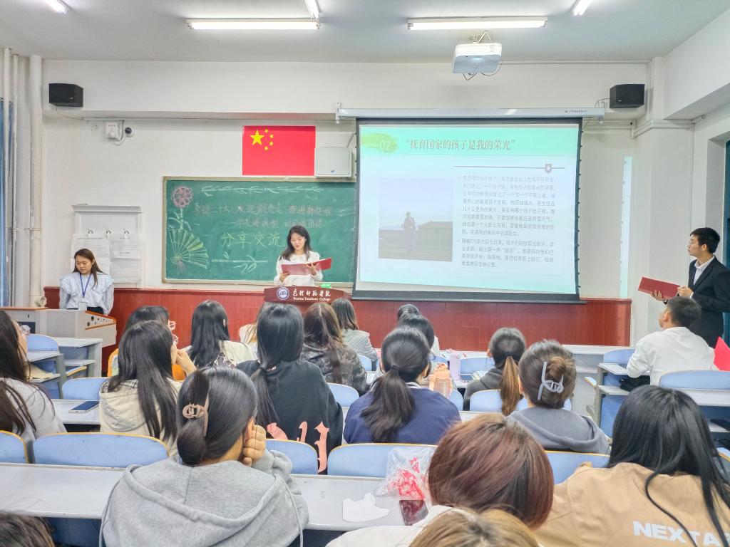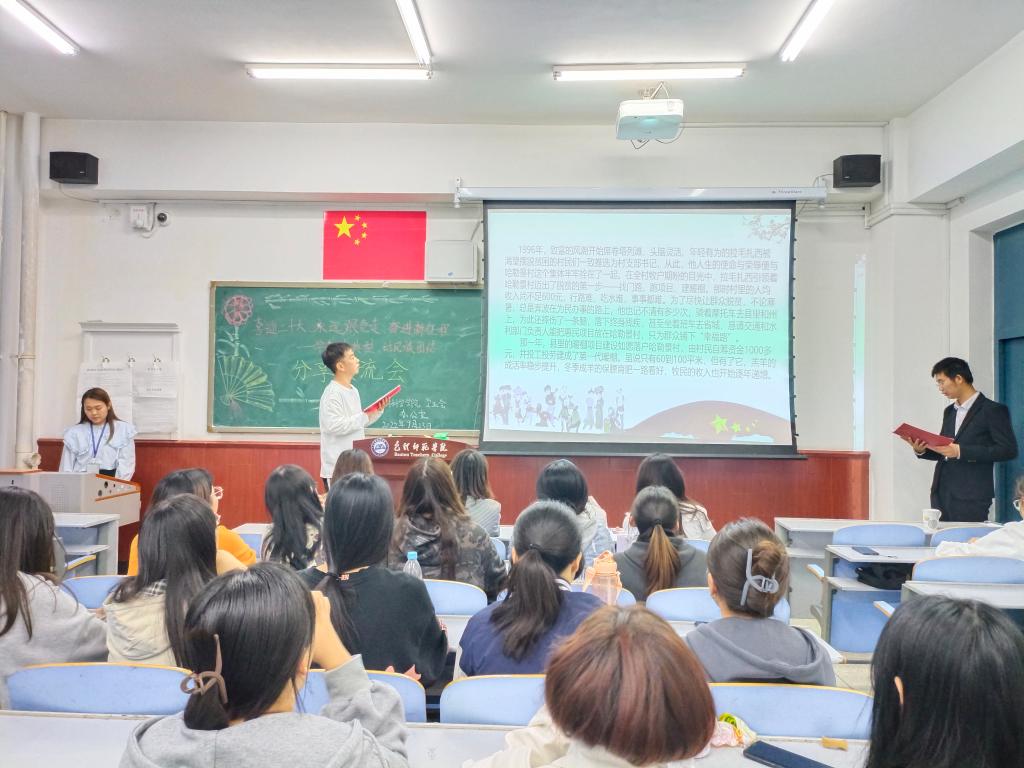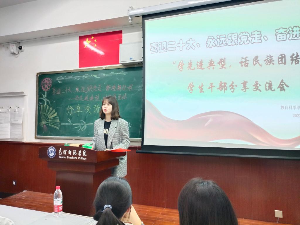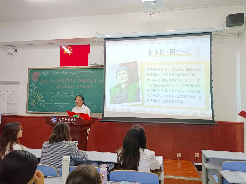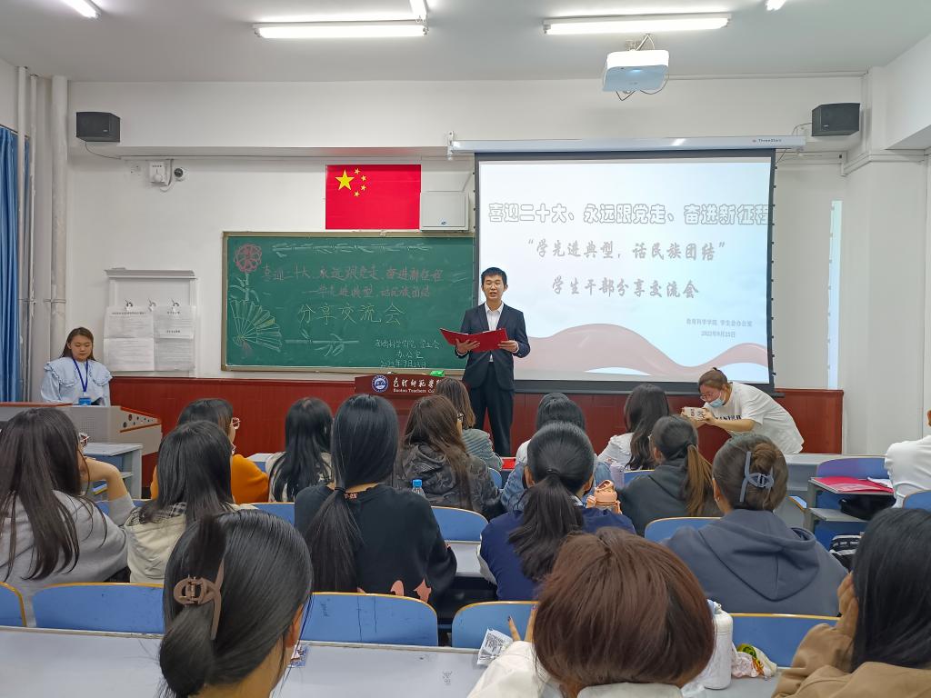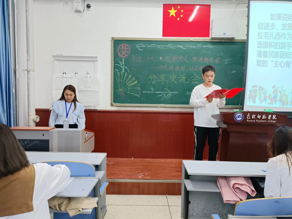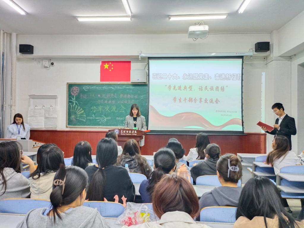 学习一个典型模范。9月23日,学院举办“喜迎二十大、永远跟党走、奋进新征程——学先进典型 话民族团结”学生干部分享交流会。本次活动有10位学生干部交流分享,辅导员王璐然及30名观众到场聆听。同学们依次上台讲述从古至今为民族团结作出杰出贡献的典型人物英雄事迹,抒发了对伟大祖国的热爱,同时也表达了自己要珍惜幸福生活,努力学习、磨炼本领,为实现中华民族伟大复兴贡献力量的决心和理想。
