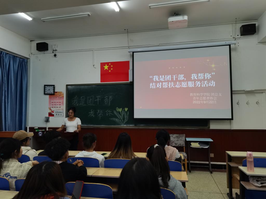 为了充分发挥团干部的模范带头作用,引领帮助少数民族学生更好的成长,9月22日,教育科学学院团总支青年志愿者协会举办“我是团干部,我帮你”结对帮扶志愿服务活动,2022级的23名新生预科生、教育科学学院团总支8名学生干部、20、21级各班团干部以及辅导员曹媛老师参加此次活动。本次活动采用团干部一对一帮扶预科生的方式进行。活动现场,学院团干部与预科生进行相互交流,从军训情况、学习情况、生活适应等问题,团干部结合自身的学习和成长经历,传授经验、分享学习方法,给出具有针对性的建议,帮助预科生更好地解决问题,以便预科同学们更好地适应、融入大学生活。