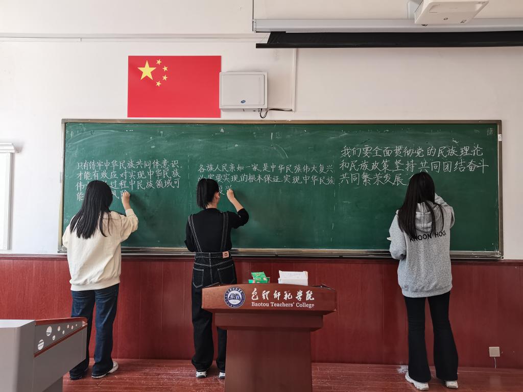 根据《包头师范学院全面深入组织开展2022年民族团结进步月工作方案》要求,以进一步铸牢中华民族共同体意识,引导全体学生牢固树立“三个离不开”“五个认同”的思想,进一步营造校园民族团结氛围,促进各民族学生交往交流交融,教育科学学院认真开展了民族团结进步活动月和第25届全国普通话推广周系列活动。该活动由党总支总体领导、组织实施,由辅导员王璐然负责活动策划和具体指导,历时一个月,融入专业特色,通过线上与线下相结合的方式,开展形式多样、内容丰富的系列活动,有党日活动、主题班会、三笔字、主题演讲、主题征文、交流研讨及结对子帮扶志愿服务活动等,覆盖学生党员、积极分子、学生干部、团干部、团员等,学生参与度较高,教育效果良好。